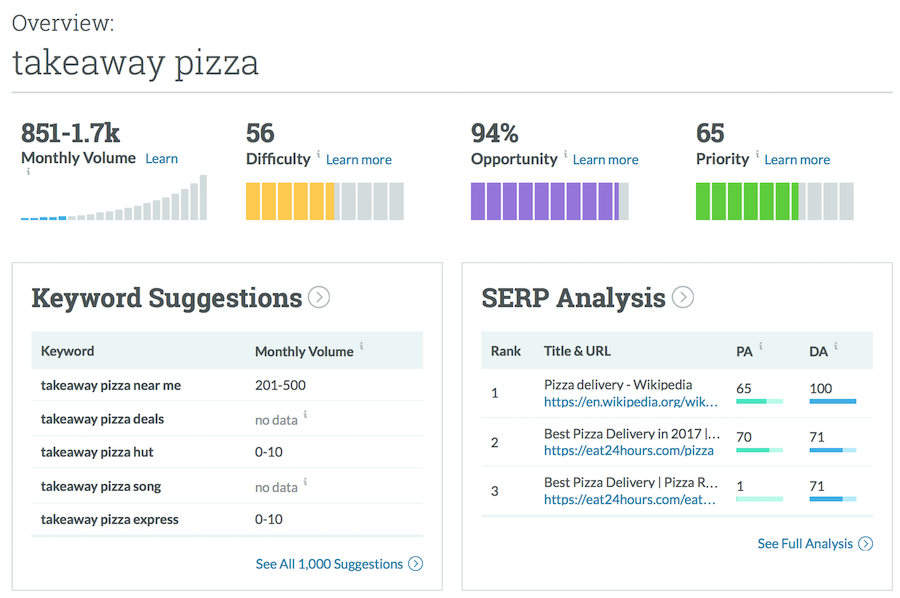 Si deseas verificar y analizar más palabras clave, deberás inscribirte para una prueba gratuita o comprar uno de los planes de Moz.