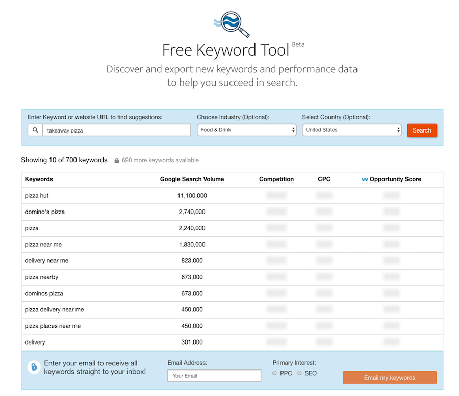 Deberás ingresar tu correo electrónico para que todos los datos se envíen a tu buzón, de lo contrario, la herramienta solo mostrará las primeras diez palabras clave.