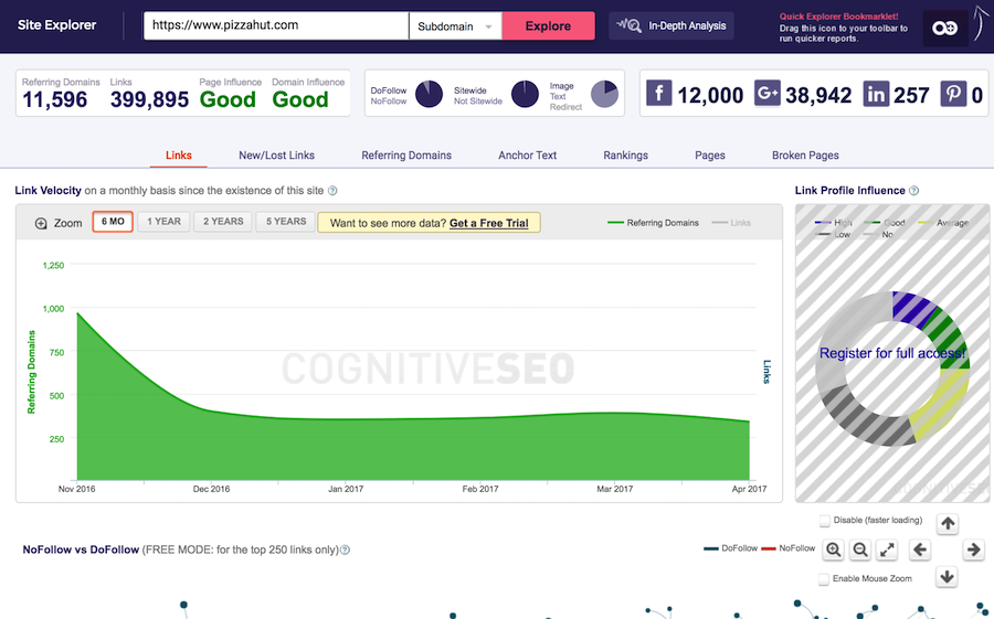 CognitiveSEO ofrece una versión gratuita de su backlink explorer.