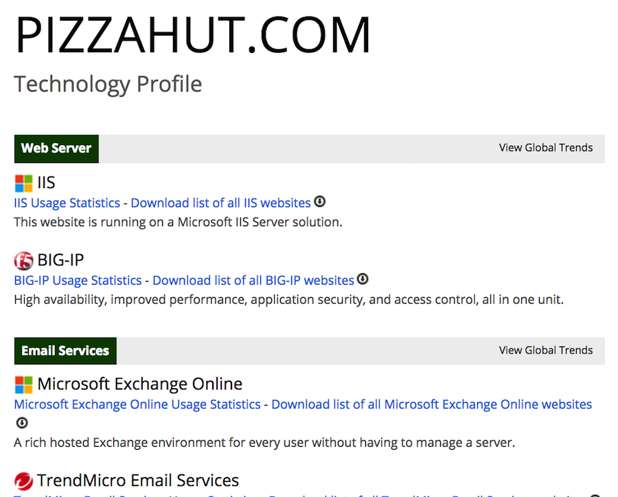 BuiltWith proporciona información técnica general sobre cualquier dominio en la web.