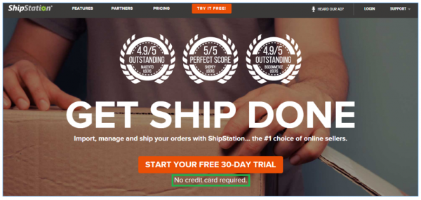 Por ejemplo, Shipstation usa 'Comience su prueba gratuita de 30 días' como texto de botones y un texto más pequeño 'no requiere tarjeta de crédito'.