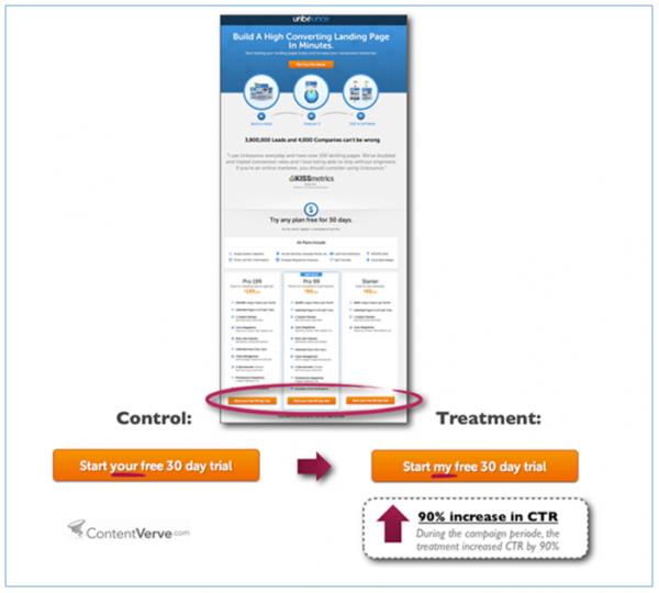 Un estudio de Michael Aagard descubrió que cambiar el texto de los botones de la segunda persona a la primera persona, resultó en un aumento del 90% en el CTR.