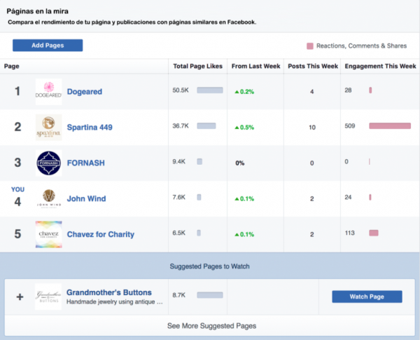 El punto principal es agregar páginas que están dirigidas a una audiencia similar a la tuya. Mientras más relevante sea su audiencia para la tuya, más valioso será la información que puedas obtener.