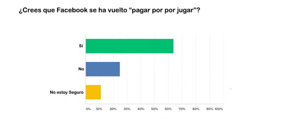 En una encuesta hecha recientemente, se encontró que asombrosamente un 60% de los profesionales en marketing dicen que Facebook se convirtió lentamente en un sitio de “pagar para jugar” (Pay to play). O mejor dicho, a menos que compres anuncios dentro de la plataforma de Facebook tu contenido no se mostrará a la mayoría de tus seguidores.