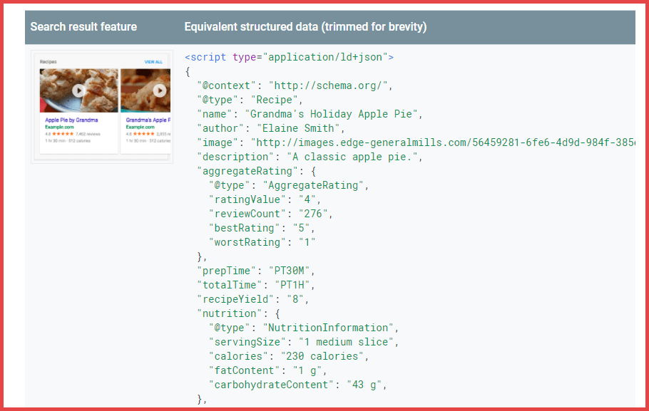 Por ejemplo, así es como se ve un fragmento enriquecido en recetas: