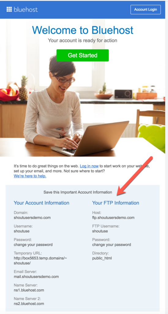 Revisa tu bandeja de entrada de correo electrónico y encontrarás un mensaje de confirmación con toda la información de inicio de sesión de tu cuenta de alojamiento web.