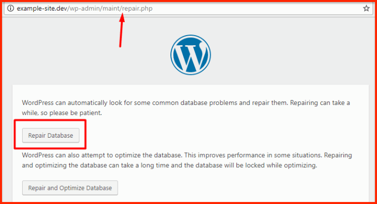 Si ves un mensaje diferente mencionando algo como "La base de datos puede necesitar ser reparada", continúa con esta sección para aprender cómo reparar tu base de datos de WordPress.