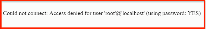 Pero, si ves un mensaje como el de abajo, tienes un problema con tus credenciales de la base de datos: