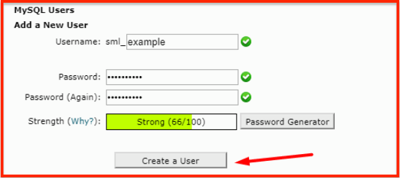 Desplázate hacia abajo hasta el área Usuarios de MySQL y busca la casilla Agregar un nuevo usuario.