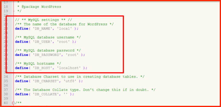 • Detalles incorrectos de configuración de la base de datos en tu archivo wp-config.php.