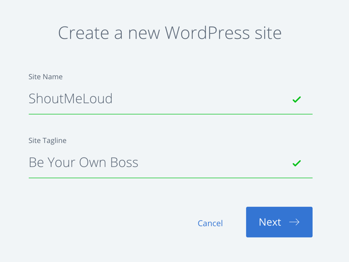 A diferencia de los viejos tiempos cuando tenías que crear tu blog manualmente, en estos días Bluehost instala y configura WordPress automáticamente para ti. Si has seguido la guía anterior y simplemente has comprado hosting + nombre de dominio gratis de Bluehost, se iniciará la instalación de WordPress para ti automáticamente.