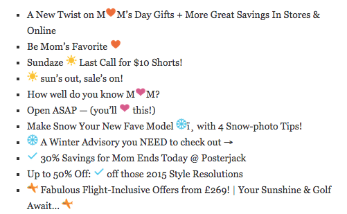 Eligió un segmento de su lista de correo electrónico que probablemente abriría sus correos electrónicos en Gmail de escritorio y agregó los emoticones a sus líneas de asunto.