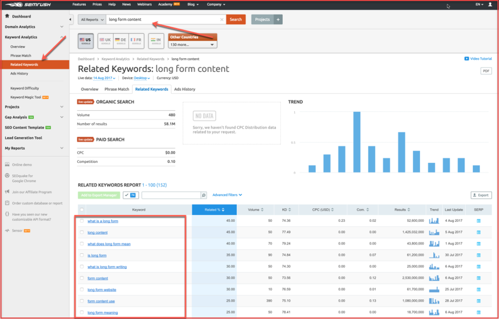 También, puedes usar la misma herramienta para reunir tantas palabras clave de cola larga como sea posible.