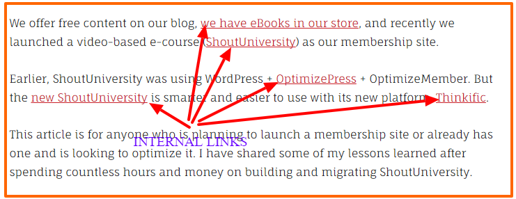Los enlaces internos / entrantes se refieren a cualquier enlace de una página en un sitio web que apunta a otra página del mismo sitio. Es uno de los métodos que utilizan los blogueros inteligentes y los especialistas en marketing de contenidos, para informar a los visitantes de Google y del sitio web que una página de contenido en particular es relevante.