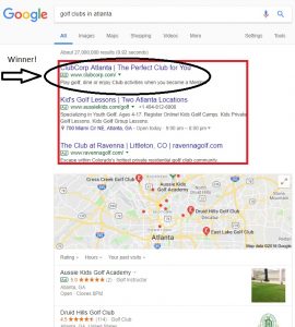 Por lo que, si un anunciante quiere orientar la palabra clave "pro golf clubs", su anuncio será comparable con una página web relevante.