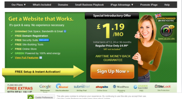 Un diseño muy atractivo es cuando la oferta es bastante clara, por ejemplo: regístrese ahora por £1.19 por mes.