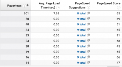 Google analytics también realizó un maravilloso trabajo al Resaltar el rendimiento de cada una de tus páginas en términos de velocidad de carga.
