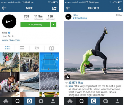 Marcas como Nike que representa el perfil más popular del mundo con 59.914.216 seguidores y Victoria’s Secret, segundo perfil más popular del mundo con 48.836.174 seguidores, se encuentran sacándole el mayor provecho a esta red social mostrando sus productos como un mundo de experiencias y un estilo de vida a seguir.