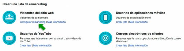 En primer lugar, debes elaborar una campaña de remarketing configurando una fuente de audiencia.
